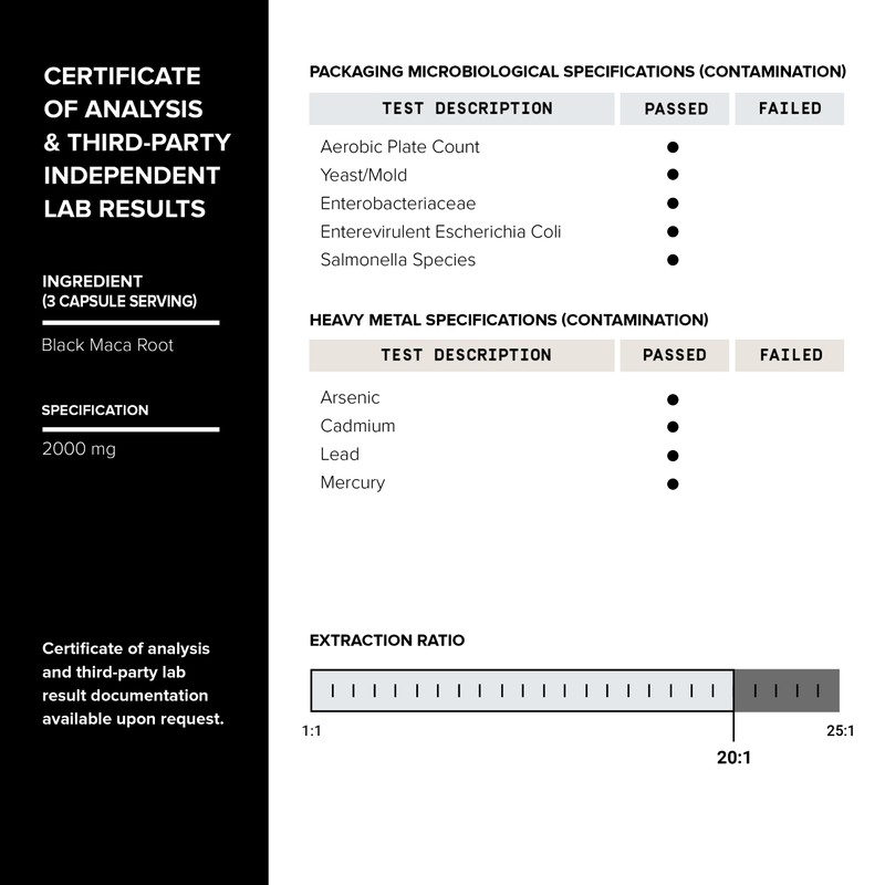 - The Highly Concentrated Form of Black Maca - Toniiq Maca capsules contains 2000mg of the highest quality black maca root powder in each pill– grown and cultivated in Peru using an extraction process to ensure a 20:1 extract ratio.