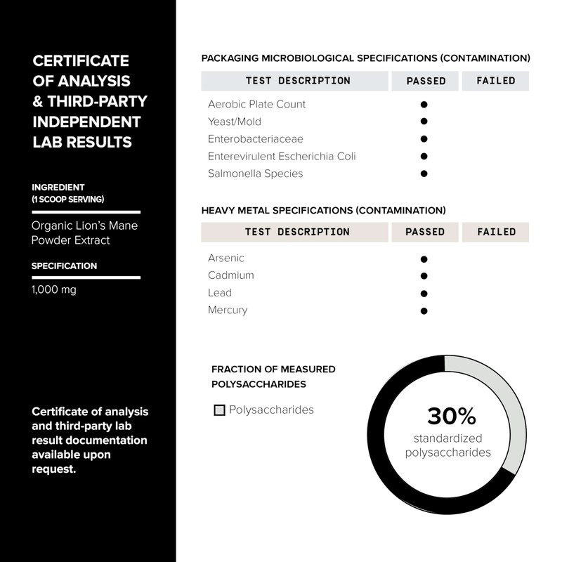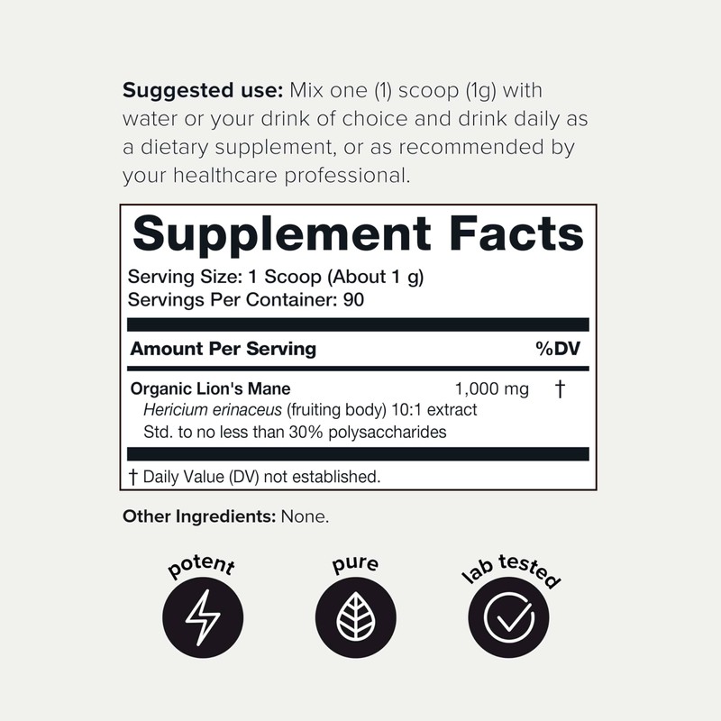 - Made From Pure Fruiting Bodies - Polysaccharides are renowned for their health-promoting effects, something other Lions Mane supplements don't provide in high doses as it requires an extra step (and expense) in the manufacturing process. With 10X concentration in Toniiq Lion's Mane, you are getting one of the most optimal lion's mane products on the market.