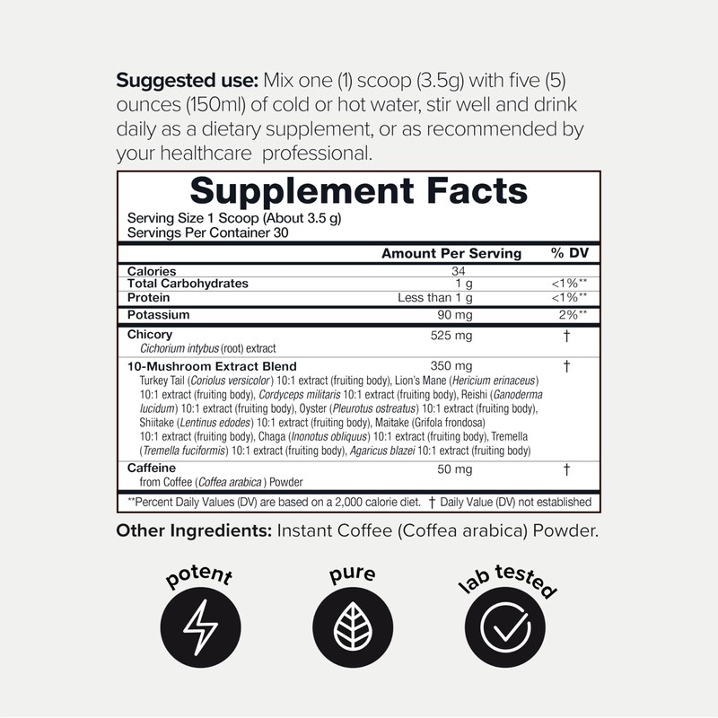 Toniiq Low-Caffeine Mushroom Coffee - Ultra High Potency 10:1 Concentrated Ex...