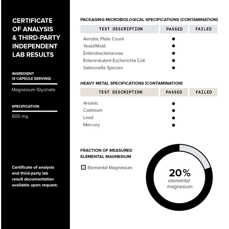 - A Key Active Ingredient - Elemental magnesium is what is renowned for it's health-promoting effects, something other Magnesium supplements don't provide in high doses as it requires an extra step (and expense) in the manufacturing process. With over 600mg of elemental magnesium in Toniiq Magnesium Glycinate, you are getting one of the most optimal magnesium products on the market.