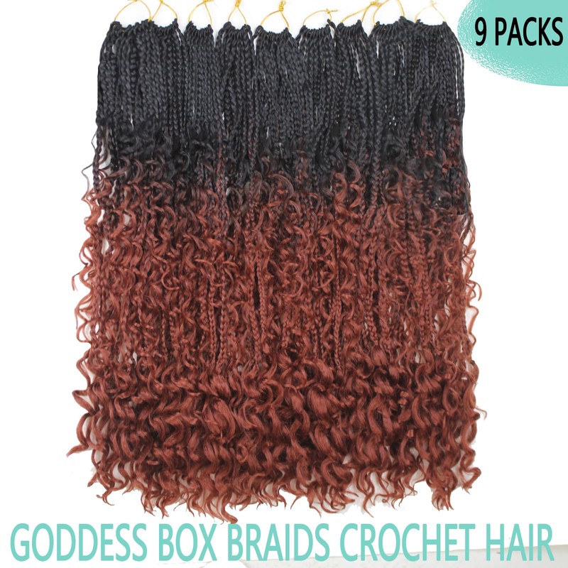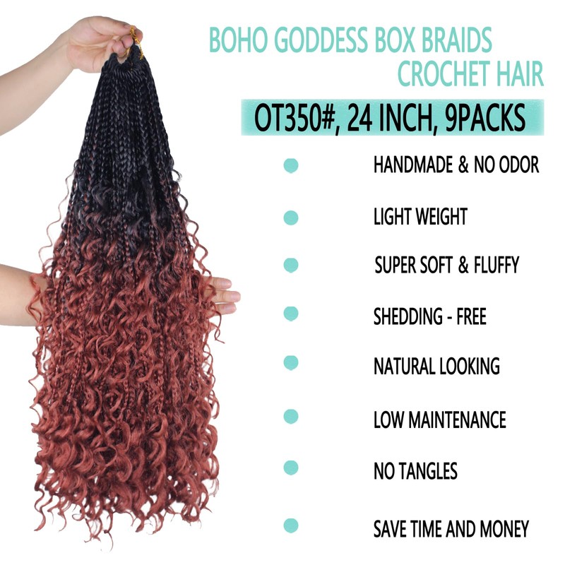 Toniola Goddess Box Braids Crochet Hair 9 Packs 24 Inch Boho Crochet Braids for Women Pre-looped Bohemian Crochet Box Braids with Curly Ends Synthetic Braiding Hair Extensions (24inch, OT350#)