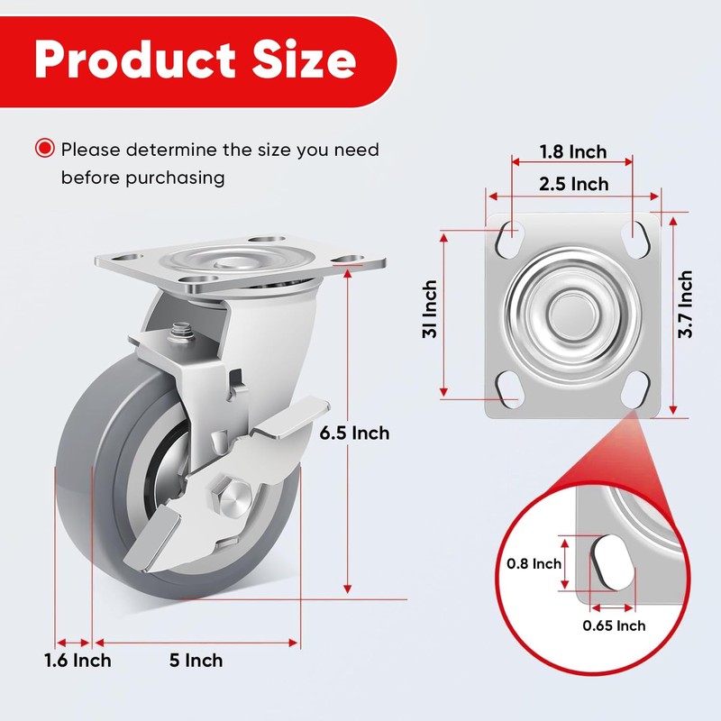 TONKI 5" Heavy Duty Quiet Caster Wheels Set (4-Pack) with Storage Box - 2 Loc...