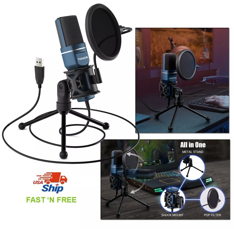 TONOR USB computer microphone is very suitable for gaming, online chatting, vocal recording, streaming, YouTube video, Skype etc.