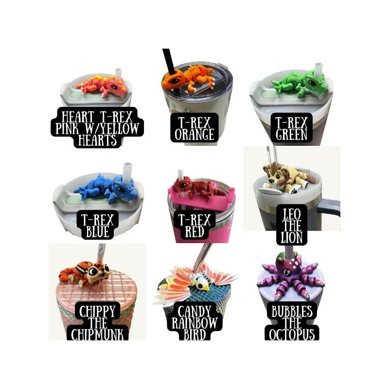• Tonsofprintz Tumbler Buddies - 3D Printed Flexi Animals - Tumbler/Drinkware Accessory