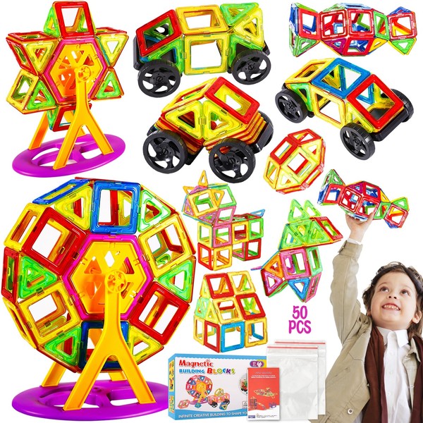 Tonsooze 50 Pieces Magnetic Building Blocks Magnetic Toy Children Magnetic Building Blocks Magnetic Game for Children Learning Toy Girls Boys Building Blocks Children's Toy from 3 4 5 6 Years Girls