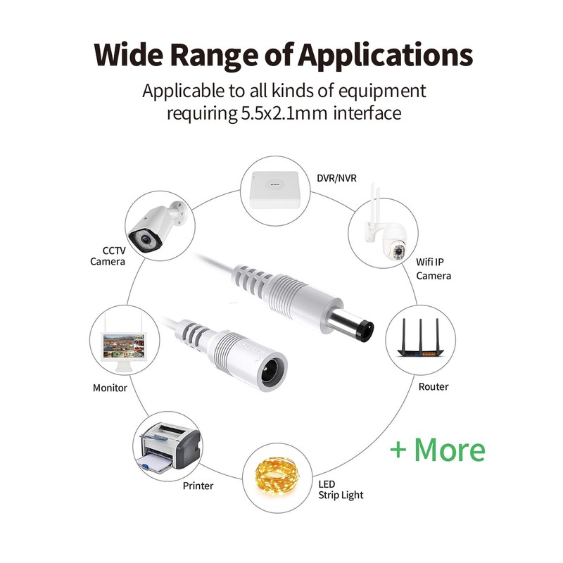 - Breite Anwendung: Dieses Kabel wird oft fr 0-24V-Ger?te wie berwachungskameras, DVR, NVR, PoE, IP Kamera, Router, LED Streifenbeleuchtung verwendet.