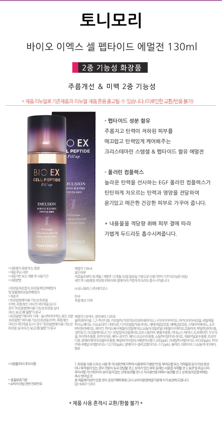 Tony Moly Bio EX Cell Peptide Fill Up Emulsion 130ml / 토니모리 바이오 이엑스 셀 펩타이드 필 업 에멀전 130ml