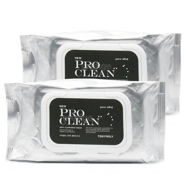 Tony Moly Pro Clean Soft Cleansing Tissue 50 sheets x 2 / 토니모리 프로클린 소프트 클렌징 티슈 50매x2개