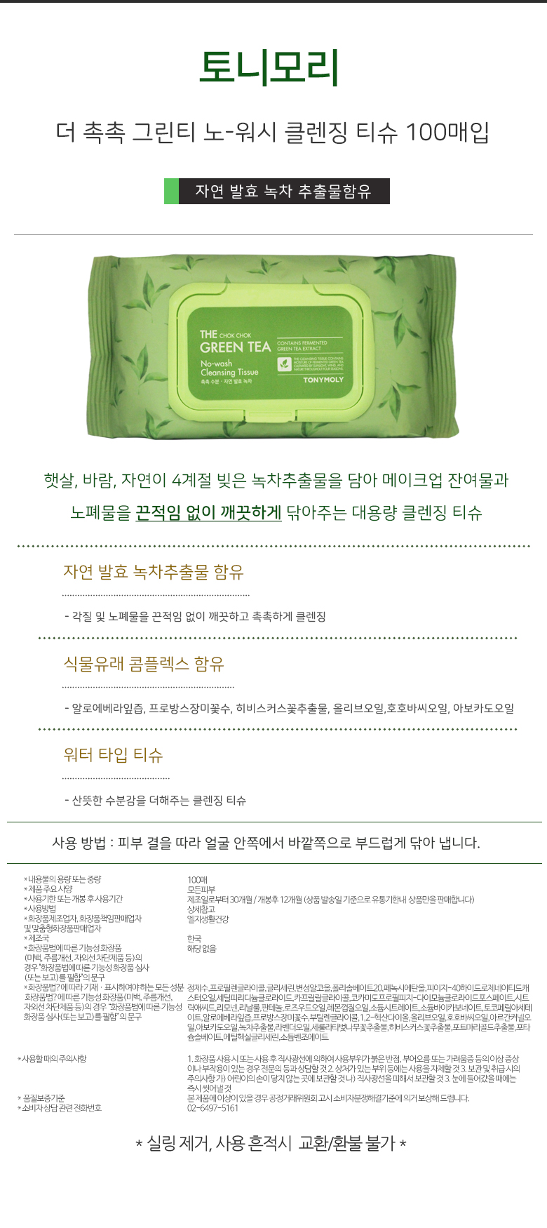 토니모리 더 촉촉 그린티 노워시 클렌징 티슈 100매 2개 3개">