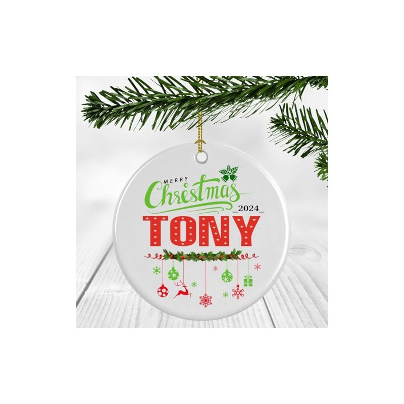 Tony Ornaments Custom Name for Baby Christmas Tree - Baby's First Christmas Ornament 2024 with Name Tony Ornaments - Personalized Ornament 3 inches White Plastic