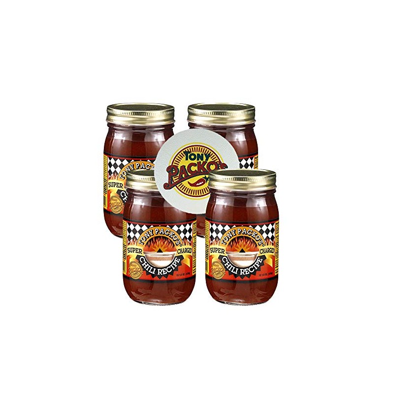 - Includes 4 Jars of Tony Packo's Super Charged Chili Base; 15.5 Ounces Each and 1 Free Tony Packo Jar Opener
