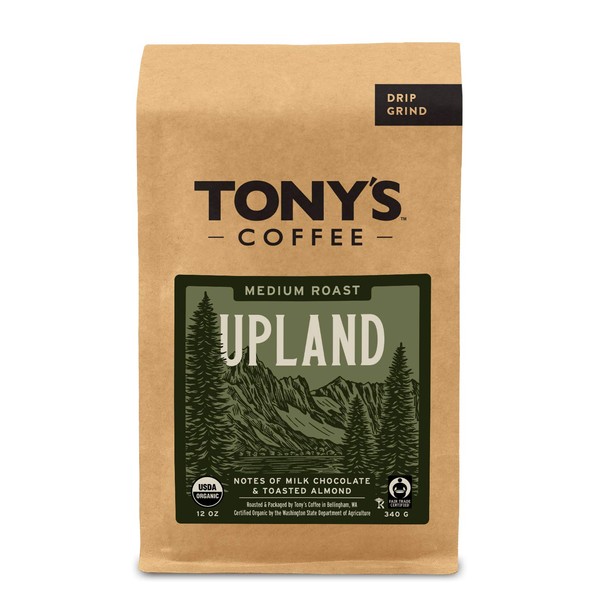 Tony's Coffee, Upland (12oz), Medium Roast Ground Coffee, Organic and Fair Trade