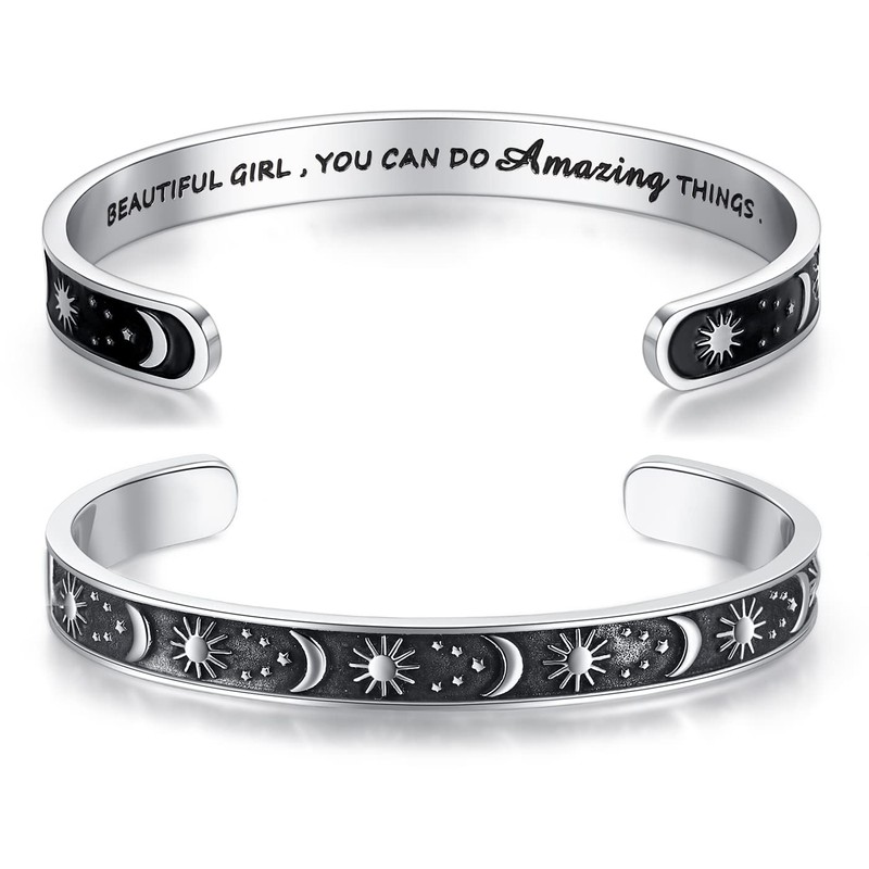 • 【 Perfect Size 】 This cuff bracelet measures approximately 6 1/4", Diameter 2.5" W/0.3". Flexible enough with a gentle squeeze or slight spreading to adjust, it fits most wrist sizes. This beautiful girl bracelet is the best gift for you or your love ones to encourage them daily.