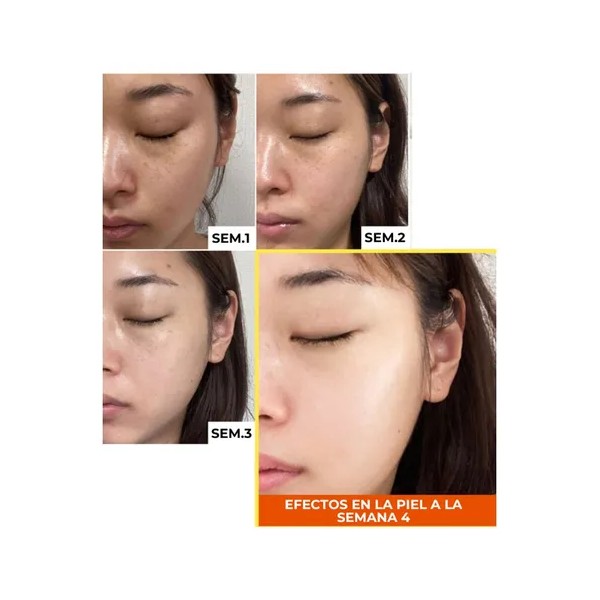 Formulado con un 7% de ingredientes abrillantadores y aclarantes que ayudan a suprimir la formación y acumulación de melanina.