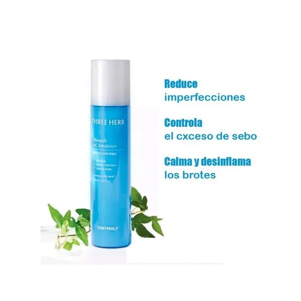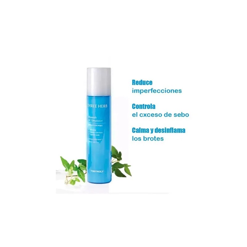 Tonymoly Three Herb emulsión dermatológica antiacné, calma y equilibra toda piel
