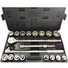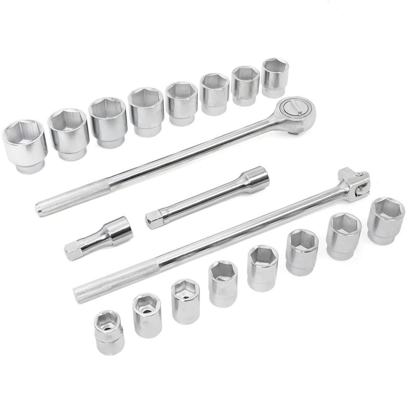 - 【Metric Size(19-50mm)】: 16 sockets:19mm, 21mm, 22mm, 23mm, 24mm, 26mm, 27mm, 30mm, 32mm, 34mm, 36mm, 38mm, 41mm, 46mm, 48mm, 50mm。 1pc-3/4''Ratchet , 1pcs-3/4'' Flex Breaker Bar ,2pcs Extension Bar ,1 x Carrying Case.