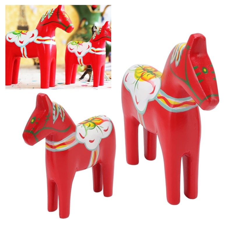 Tonysa 1 Pair Swedish Wooden Dala Horse Statue Figurine for Ornaments Decoration Souvenir