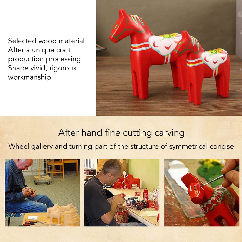 - Exquisite carving shape: Swedish dala horse made of wood after hand fine cut, wheel gallery and rotating part of the structure of symmetrical conciseness.