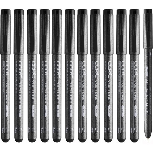 Too Copic Multiliner, Black, 0.004 inch (0.1 mm), Bulk Purchase Set of 12
