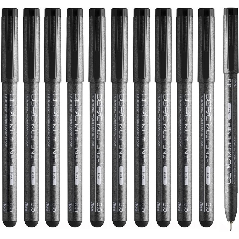 Too Copic Multiliner, Black, 0.02 inches (0.5 mm), Bulk Purchase Set of 12