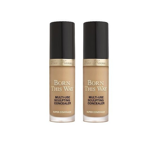 - Too Faced 2-pack Born This Way Super Coverage Concealer What It Is Hydrating, full-coverage, weightless 4-in-1 concealer that helps you conceal, contour, highlight and retouch your look. What You Get (2) .50 fl. oz. Born This Way Super Coverage Sculpting Concealer What It Does Can be used for concealing, contouring, highlighting, and retouching Diamond doe-foot allows product to be applied in thick lines using the flat surface, as well as thinner lines using the side and tip for precision coverage Weightless wear Hydrating so skin is never dry or cakey How to Use To Retouch/Conceal under eyes and hide Hyperpigmentation: place a dot from the flat side of the diamond doe-foot applicator directly on area of discoloration and blend into skin with fingers, concealer brush (or All-Over Shadow Brush from Teddy Bear set) or Beauty Blender-type sponge in a pressing (stippling) motion until flawless Conceal blemishes: place a dot from the tip of the diamond doe-foot applicator on blemish for precision coverage Use edge or tip of applicator to sculpt with a finer line for precision highlight and contour; use flat side for fuller delivery Contour: Choose neutral to cool-toned shades 3 tones darker than skin tone to create a believable shadow and shape. Highlight: Choose a shade 2-3 shades lighter than your natural skin tone and in your same undertone. Made in Italy