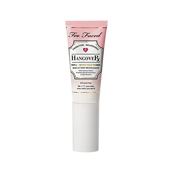 Got a beauty hangover? Our replenishing face primer is your instant cure. It hydrates, smoothes and brightens skin for a dewy, healthy looking finish. When long days of work and late nights of play give you a beauty hangover, this is your instant cure. Hangover is a revolutionary makeup primer infused with coconut water, probiotics and skin revivers that work together to boost skin's radiance, promote elasticity and help hydrate while locking down makeup for fresher, longer and more flawless wear. We harnessed the science of hydration to create a creamy, penetrating primer that acts like an energy drink for the skin by replenishing moisture levels. It can be worn alone for a dewy, healthy looking finish or under bronzers, foundations and powders to create the perfect canvas. The unique combination of coconut water, probiotics and skin revivers work together to: Hydrate and brighten skin Promote skin's elasticity and tone Soothe and smooth the skin Get all the priming benefits you love while looking like you received eight hours of sleep and drank your daily dose of H2O Vegan Friendly Paraben Free Net Weight: 40 ml / 1.35 oz.