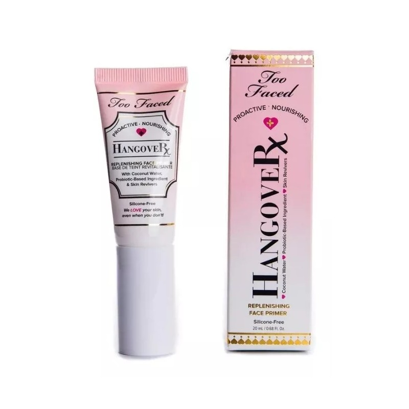 Hangover Replenishing Face Primer es un primer facial reparador que hidrata, suaviza e ilumina la piel para lograr un acabado húmedo y con un aspecto saludable.