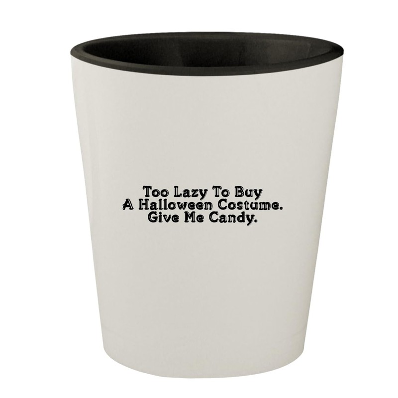Too Lazy to Buy A Halloween Costume. Give Me Candy. - White Outer & Black Inner Ceramic 1.5oz Shot Glass
