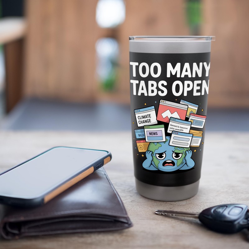 Too Many Tabs Open Funny Anxiety ADHD humor Emotional Chaos Stainless Steel Insulated Tumbler