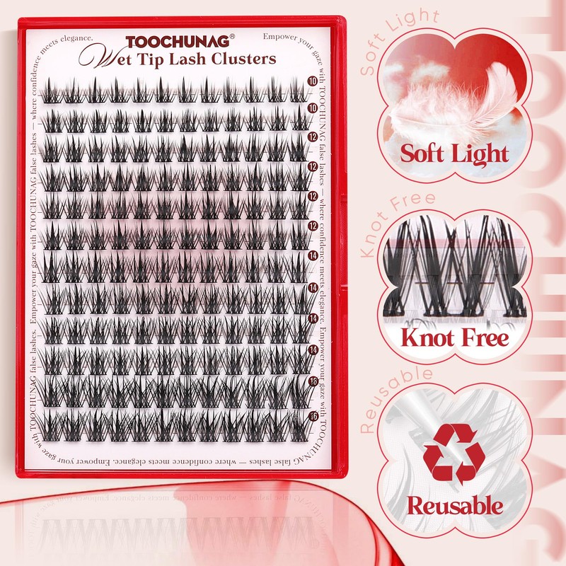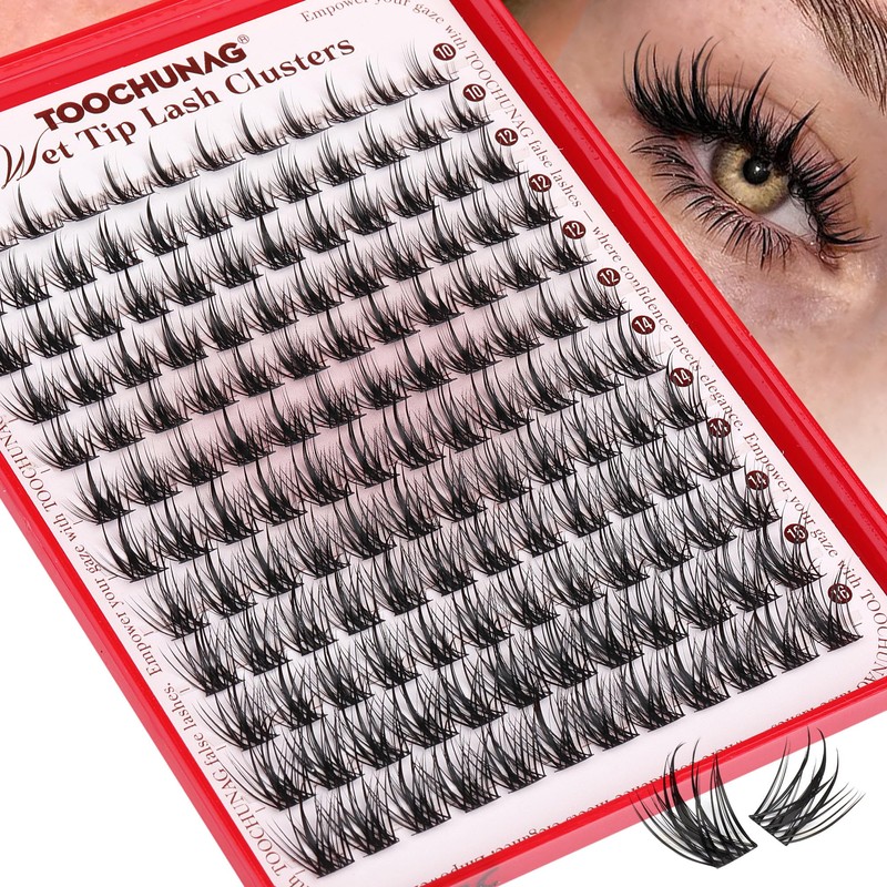 TOOCHUNAG Wispy Eyelash Clusters Manga Lashes Extensions 10-16mm Cluster Lashes Individual 144pcs Natural Lash Clusters Wet Tip DIY Soft Cluster Eyelash Extensions