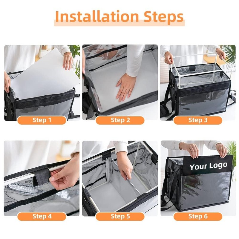 - Self-standing & Heavy-duty - To prevent the delivery bag from collapsing, we have added the lightweight fiberglass frame and removable bottom plate inside it.