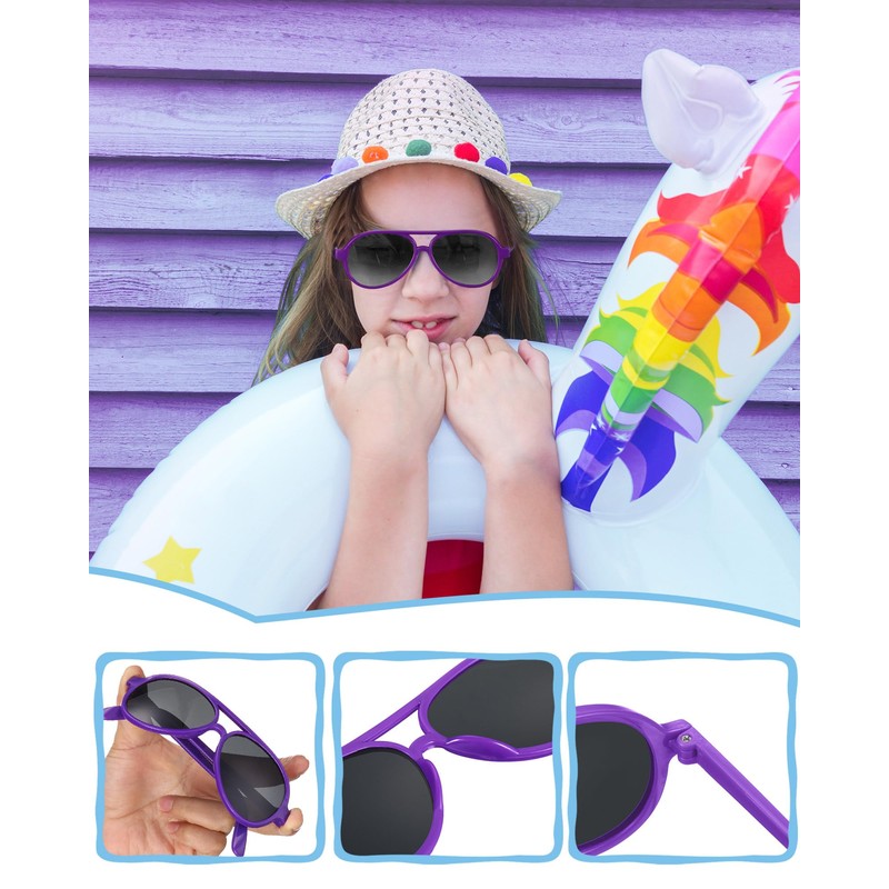 - Eye Catching Party Neon Style: 80's retro design horned rimmed glasses will change the style from normal to cool; Purple color design of the legs, can become children's favorite sunglasses