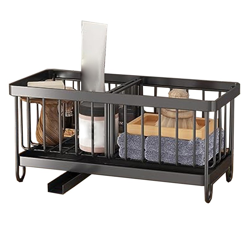 - 【Detachable Design】The storage rack is equipped with a detachable drip tray and a divider, the drip tray can collect the falling water droplets, keep the countertop dry and clean, and the partition can separate different cleaning utensils.