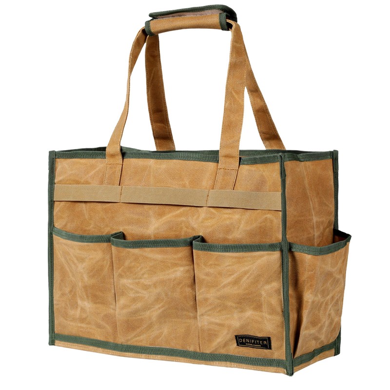 Tool Bag Organizer with 6 Pockets and Handle, Durable Waxed Canvas Tote Bag for Tool Organizer and Storage (Khaki)