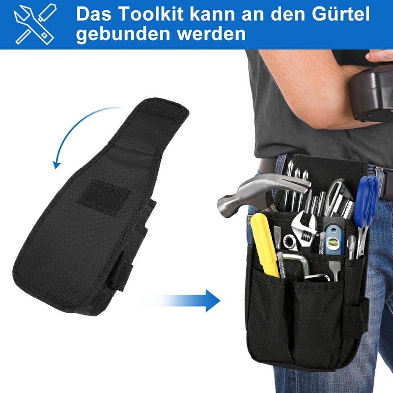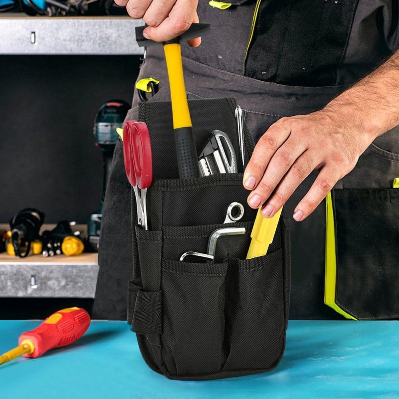 - Practical tool bag: practical tool belt bag for storing measuring tape, screwdriver, tape measure, electric tape measure and other well organised tools; this bag looks small, but the waterproof small tool organiser can hold almost a tool box