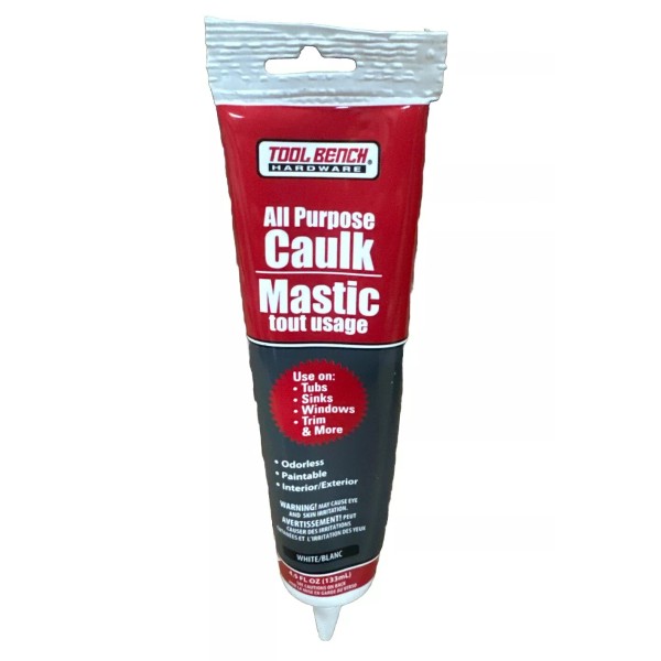 Tool Bench Hardware All Purpose Caulk Mastic Silicone Sealant, White, 4.5 fl oz
