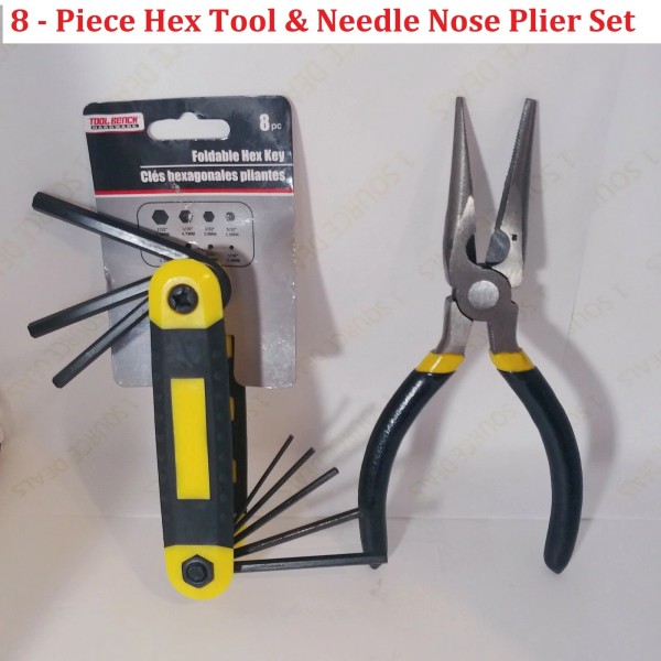 Tool Bench Hex Key Tool & Needle Nose Pliers Set - Foldable 8-Piece Hex Key Set Ships Free