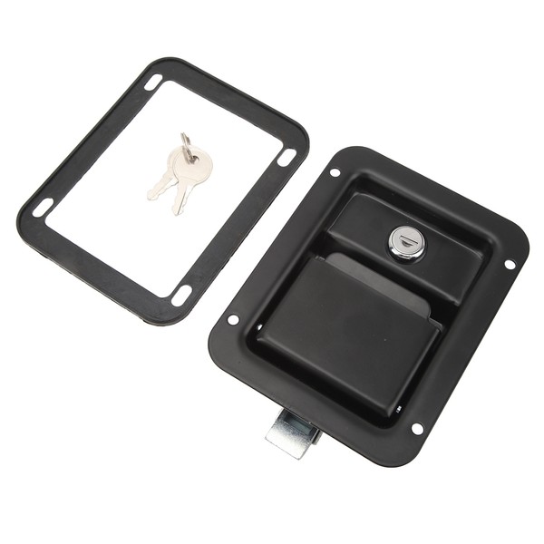 1、Wide Applications: Tool box handle latch can be used for RVs, trucks, trailers, mobile machinery shops, camper, stool boxes, etc. 2、High Strength and Durability: This toolbox latch is made of carbon steel panel and stainless steel latch, black spraying surface. It is durable, rustproof. 3、Come with 2 Keys: Heavy duty locking paddle latch with 2pcs matching keys is very suitable for small toolboxes and other small compartment doors. 4、Simple Operation: Toolbox handle latch is simple to operate, flush mount, no cutting or splicing, no complicated operations, convenient for using. 5、Perfect Replacement: The external dimensions of this lock is 140x108mm/5.51x4.25in. It is very suitable for replacing damaged or worn box latches.