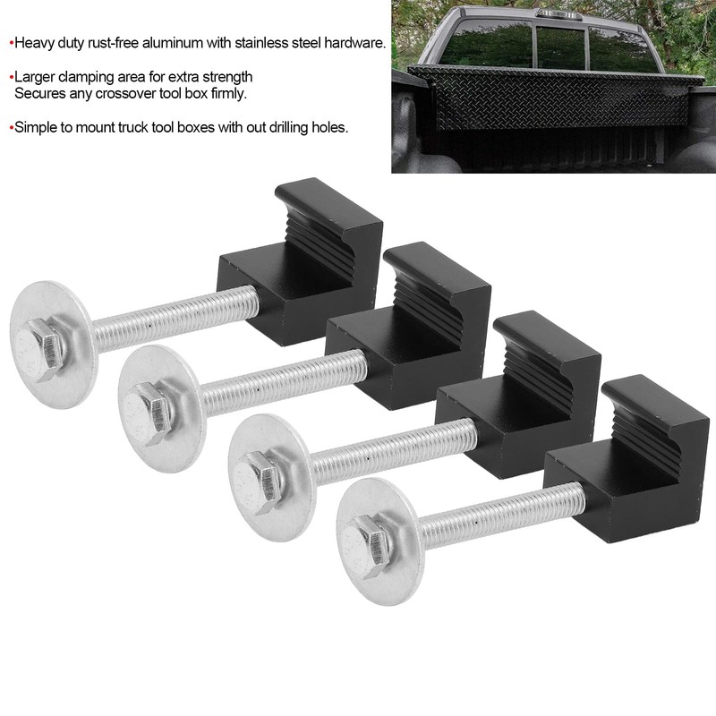 Tool Box Mounting Kit 4Pcs Set Pickup Truck Tool Box Mount Tie Downs J Hook Clamps Duty Aluminum No Drilling
