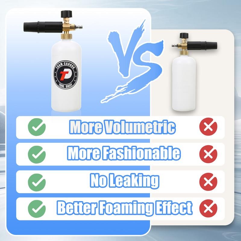 Tool Daily Short Handheld Water Spray Tool with Foam Cannon, 1/4 Inch Quick Connector, with 5 Pressure Washer Nozzle Tips, 1 Liter:_Foam Sprayer And Foam Cannon