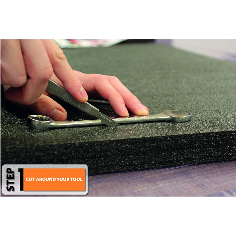 Find it fast - have your equipment organised and ready to go! Do-it-Yourself Cut and Peel Foam is also known as Kaizen Foam. Simply trace around your tools with a scalpel and then peel the foam layers away to the required depth. Great for organising tools, camera equipment, beauty products, stationary and many more products! Fast and easy - trace, cut and peel. DIY - Achieve amazing results in minutes. No specialist tools required. Just a marker, knife and your finger. Layers are welded so peel as deep as you require. Specifically made for tool and part storage. Practical charcoal colour - tough and washable. Provides excellent cushioned protection.