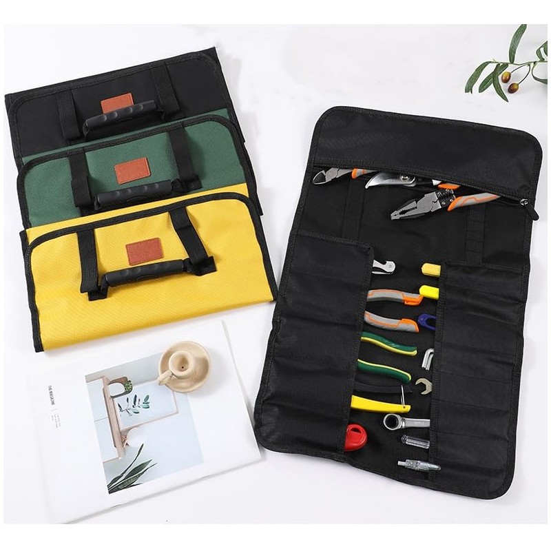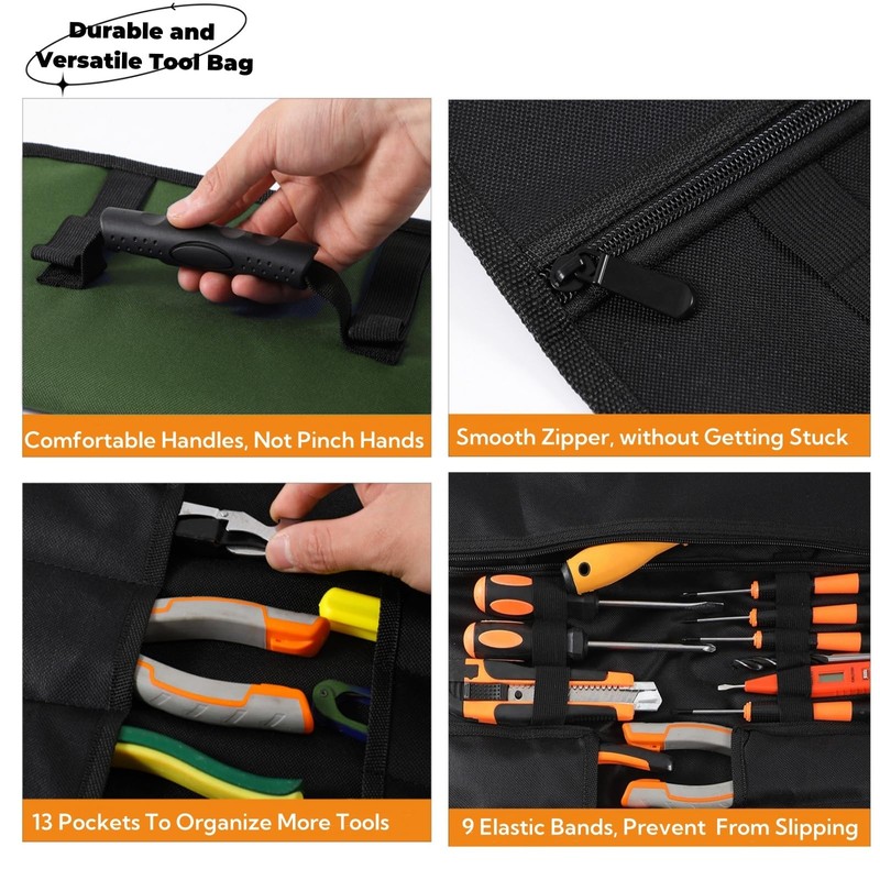 Tool Roll Up Bag Tool Organizers, Small Tool Bag for Men Women 22 Tool Pouches Tool Roll Organizer Portable Handy Tools Storage For Mechanic Electricia - Green