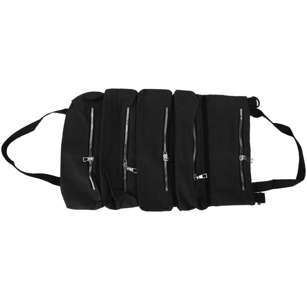 Tool Storage Bag Canvas Foldable Zipper Design Lightweight and Durable High Capacity Tool Roll Up Bag with StrapsBlack
