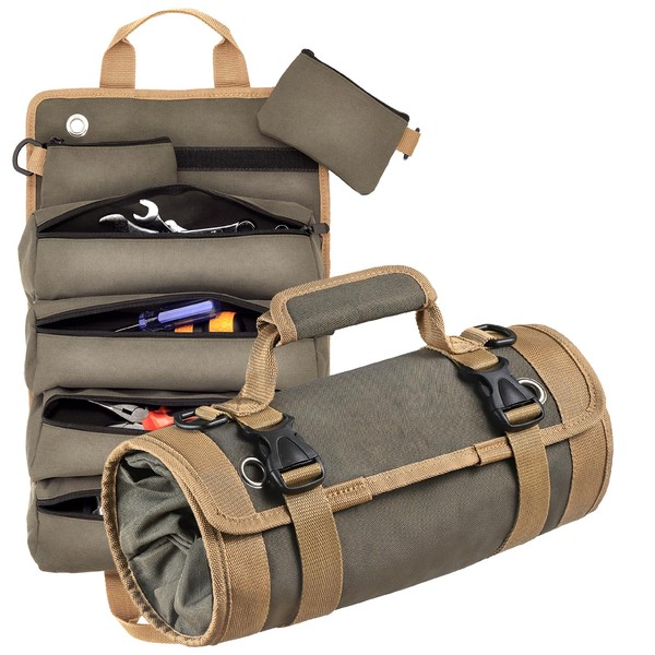 • ✅【ロール式工具バッグの説明】欧米では広く普及している工具バッグです。数秒でロールにできます。広げるのも数秒です。見た目以上に収納量があり、使い方は、工具をポケットに入れ、端からくるくると巻いて使います。欧米では広く普及している工具バッグです。