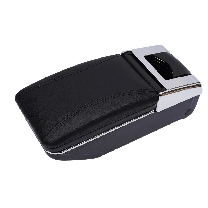 Type: Leather car center console armrest box armrests storage box armrest can rotate (black)
