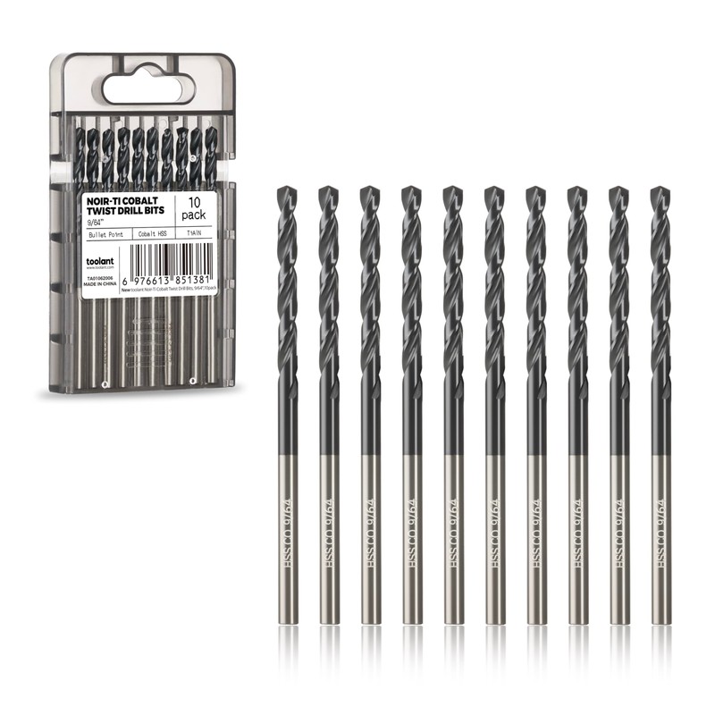 Toolant 9/64" Cobalt Drill Bit Set(Pro) Titanium Aluminum Nitride Coated (TiAlN) with Bullet Point Tip, 10-Piece Bulk