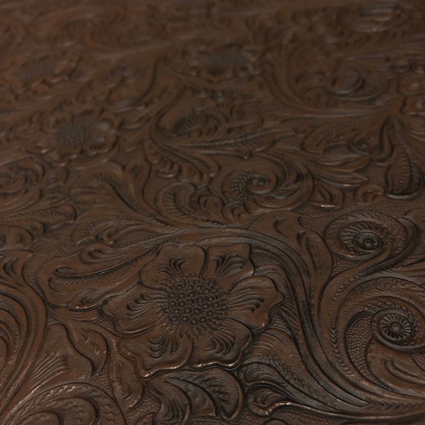 Tooled Faux Leather Western Cowboy, Embossed Vinyl, Craft DIY and Upholstery Pleather Fabric - Cut by The Yard (Chocolate)
