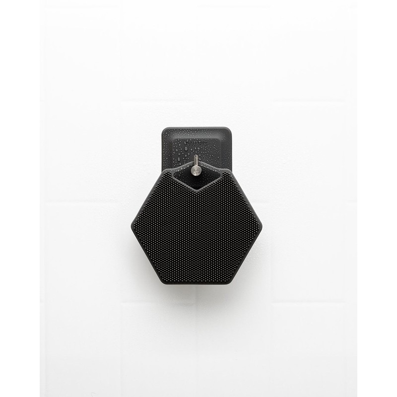 The Arnold Reusable Hook in Charcoal is a strong, stainless-steel hook that can hold up to 4lbs of weight and cleverly sticks to any shiny surface with Tooletries' patent-pending super-grip-silicone technology.