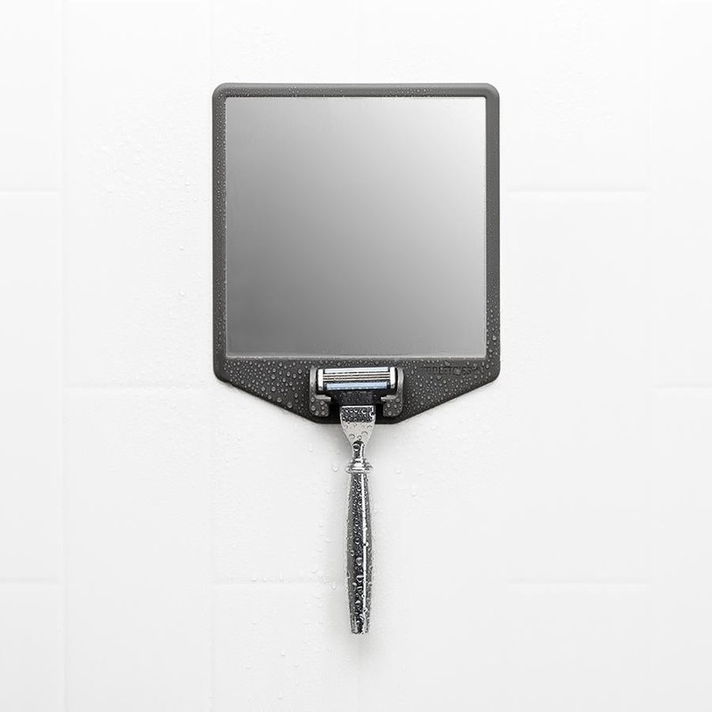 Tooletries The Joseph Shave Station - Charcoal is a two-in-one fog-resistant and shatterproof mirror and bespoke razor cradle made from 100% antibacterial silicone.
