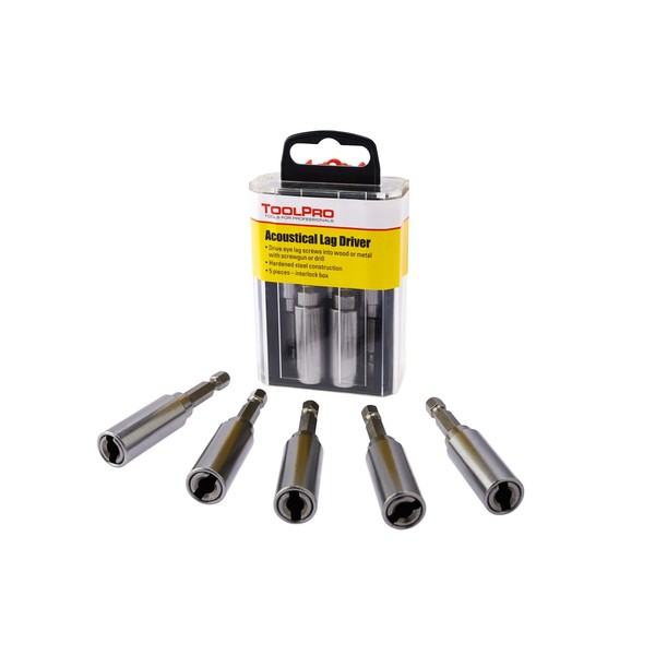 ToolPro Eye Lag Driver Set - 5 Pieces in Interlocking Storage Box for Quick Dispensing, Quick Install Bit Kit for Professional Drywall & Ceiling Installations